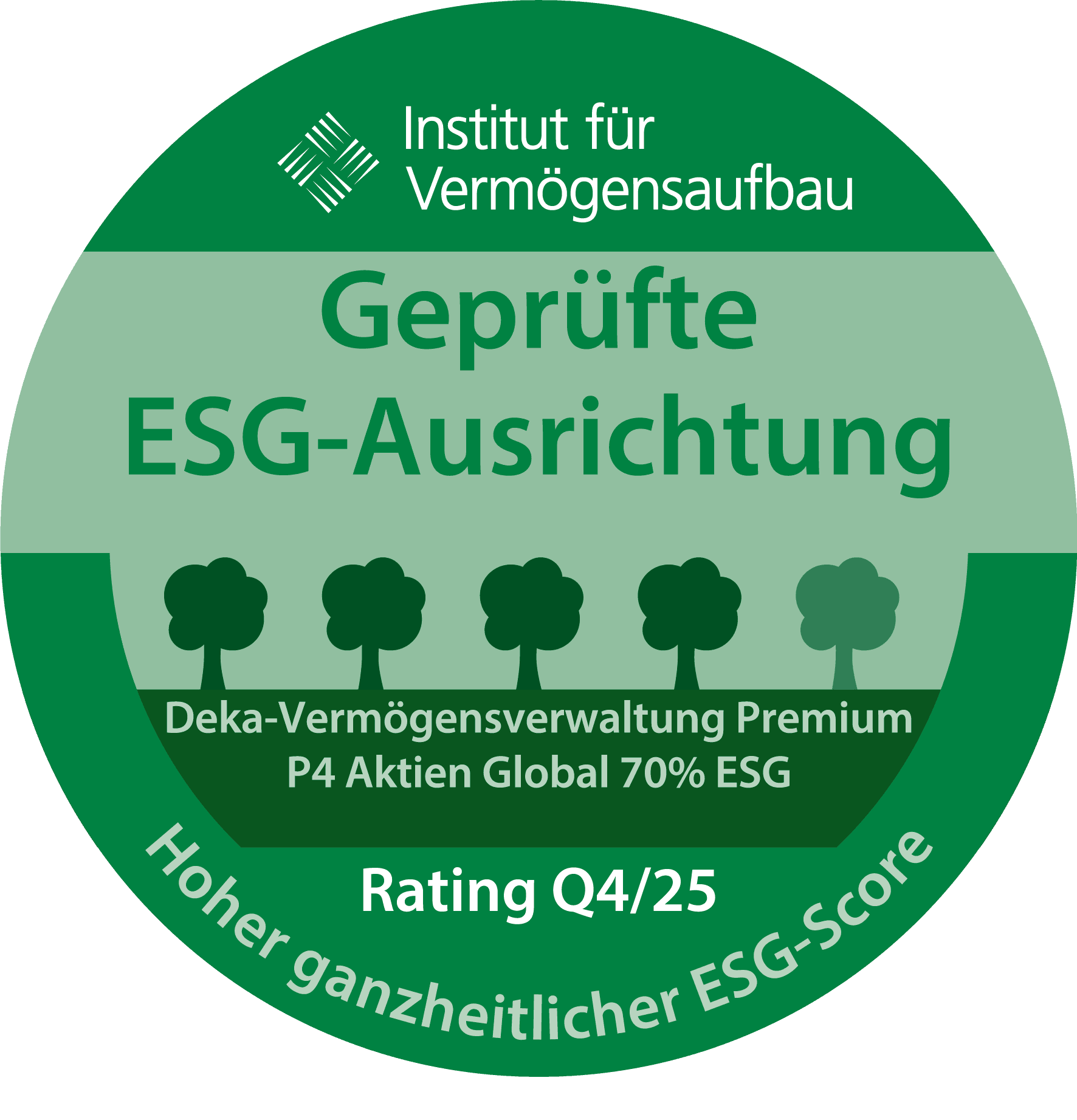 Das Institut für Vermögensaufbau (IVA) bewertet die nachhaltige Ausrichtung von Deka-Vermögensverwaltung Premium und bezieht sich dabei auf einen hohen ESG-Score im Vergleich zur Benchmark. Die ESG-Zertifizierung liefert ein konsolidiertes Urteil über die Nachhaltigkeitsaspekte eines Portfolios.